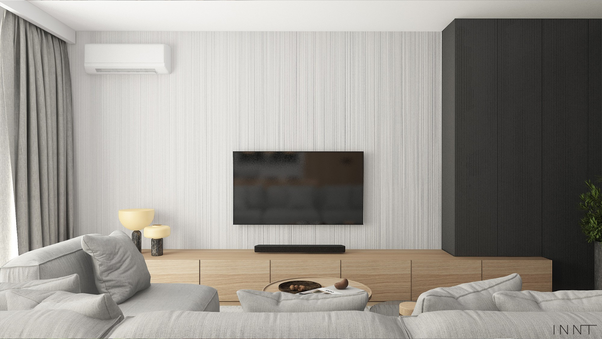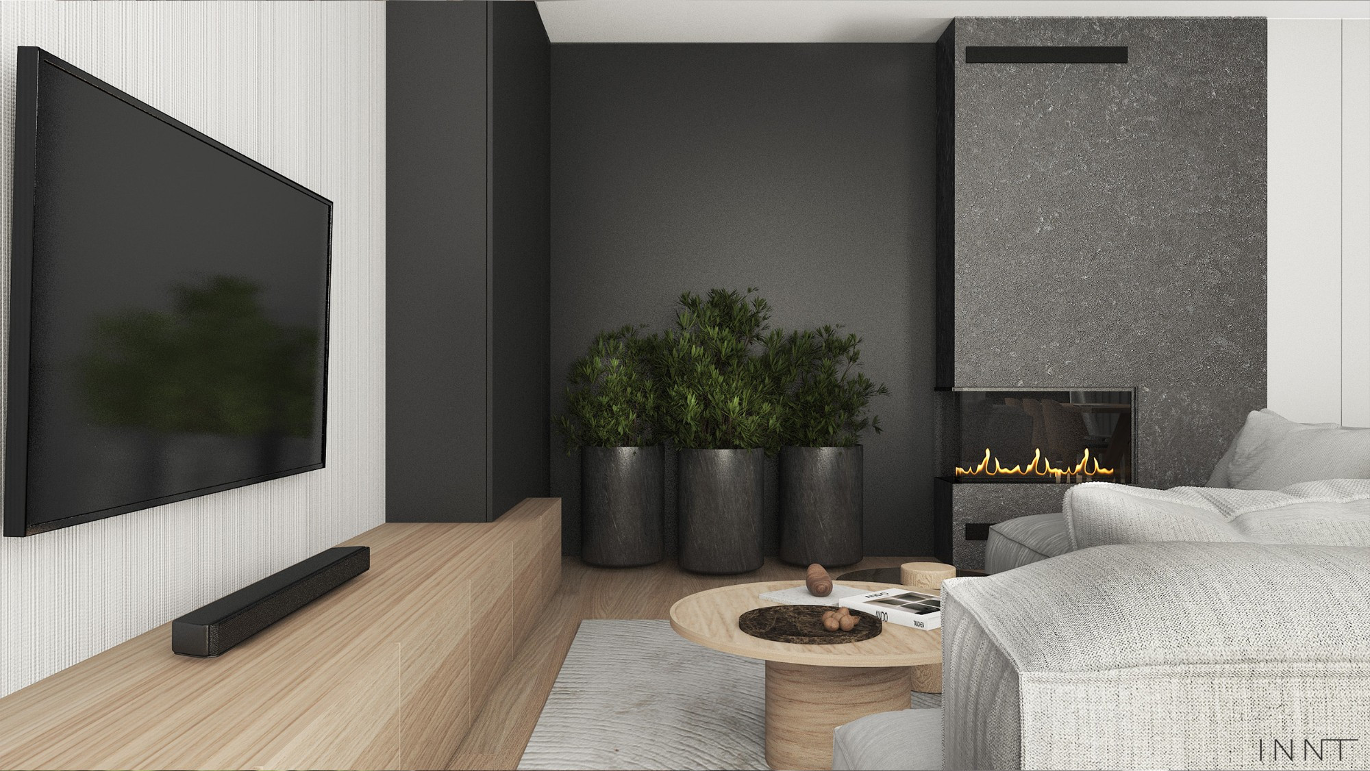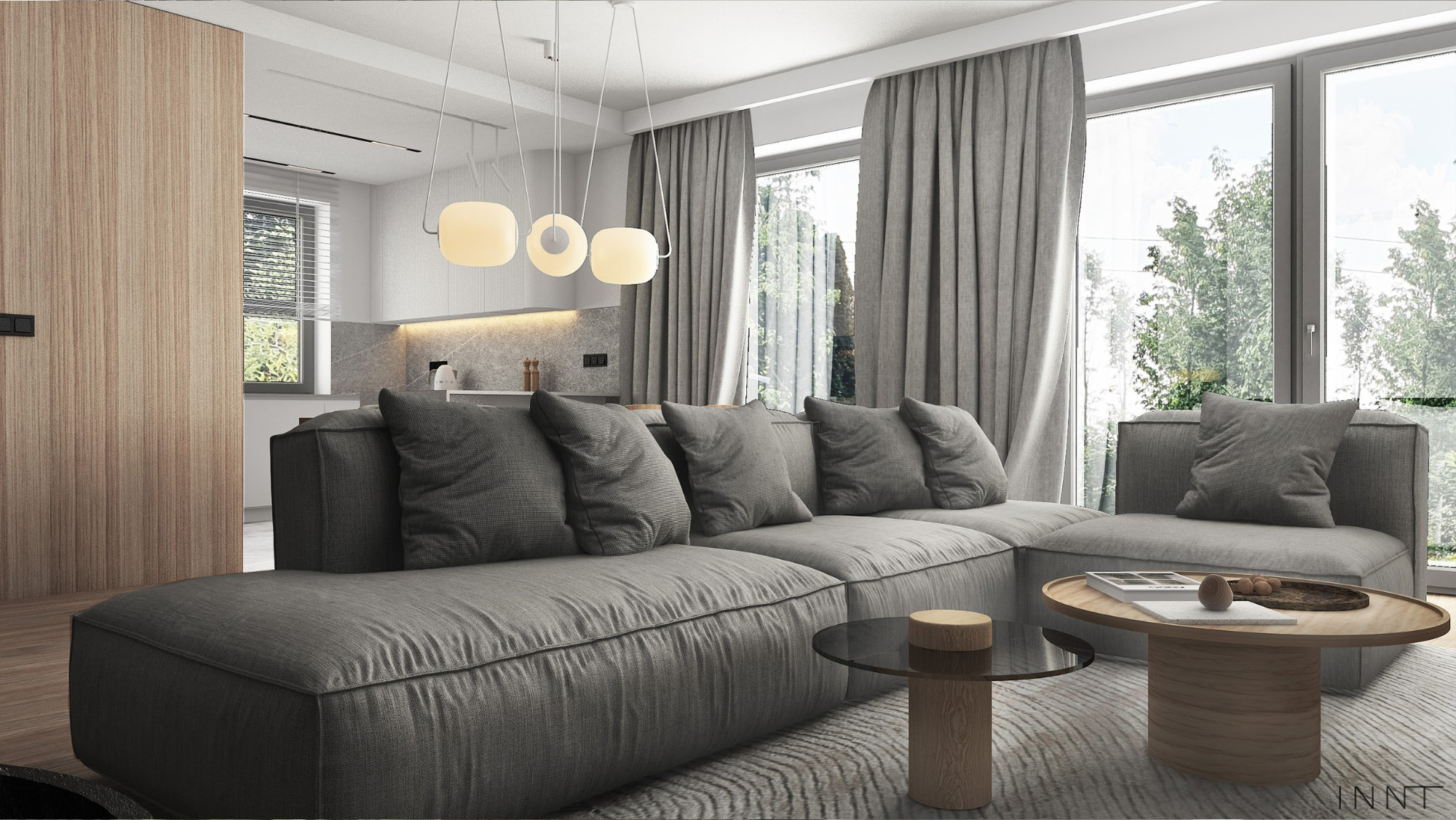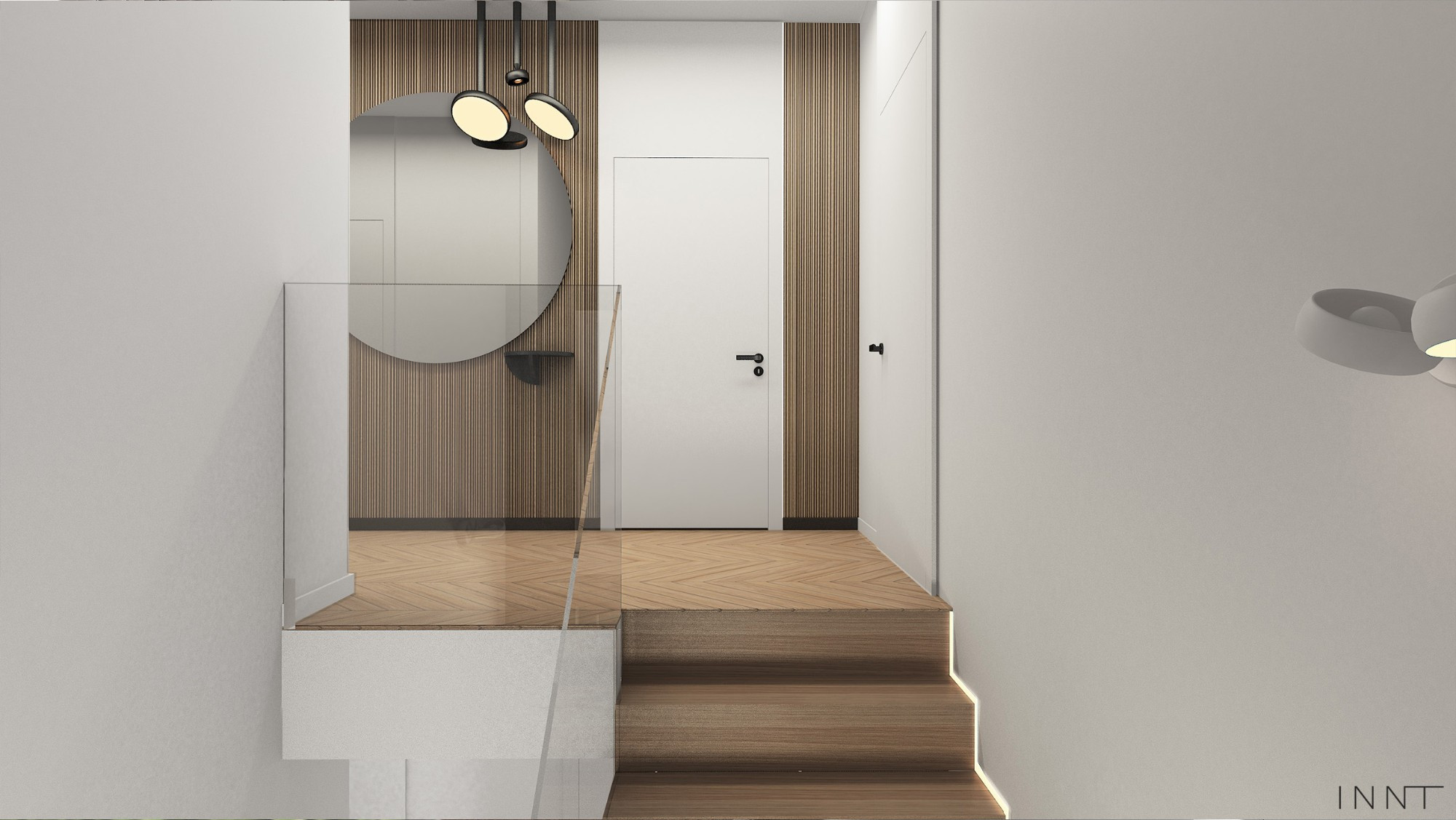 Aranżacja wnętrza domu jednorodzinnego dla czteroosobowej rodziny. Przestrzeń dzienna była wyzwaniem ponieważ bedzie to najwazniejsze miejsce w calym domu. Funkcja przyjmowania gości oraz strefa wspólnego czasu rodziny została połączona w przemyślanej formie i ponadczasowym wydaniu. Pokoje dzieci uwzględniające zmieniajace się preferencje z biegiem lat. Łazienki minimalistyczne i jasne z wanną i z prysznicem.